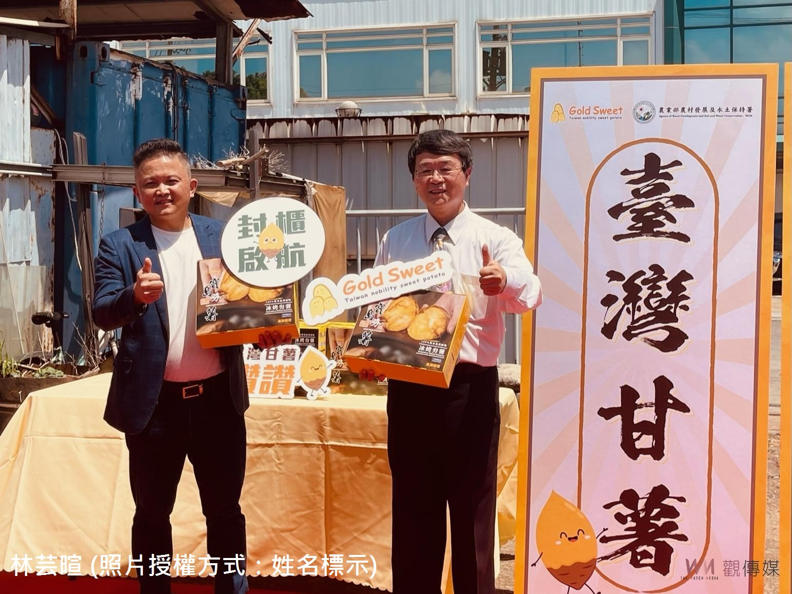 8月21日台中市沙鹿區果菜運銷合作社於該社廠區舉辦「臺灣甘藷封櫃啟航」活動,邀請本署李鎮洋署長及本分署陳榮俊分署長共同參與,合作社在本署農社企計畫2年來的協助下,以及本分署串聯農村社區參與地瓜栽植和產銷履歷提升產量品質、研發多樣加工品及完工加工生產線,調節產季供需平衡,並協助將地瓜相關產品進軍通路、導入團膳、銷往國外等積極作為,終獲日本市場的青睞,為臺灣地瓜開拓國際新通路。
