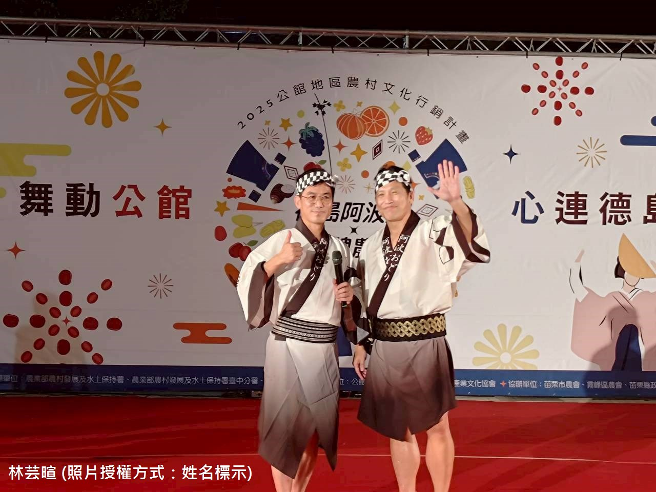 9月25、26日邱俐俐副縣長及陳榮俊分署長出席苗栗縣政府主辦的「台日農村藝術文化交流金賞」,活動串聯卓蘭壢西坪與公館黃金小鎮兩個金牌農村,吸引大量民眾並近距離欣賞擁有四百年歷史的正宗阿波舞,透過表演藝術讓產業與文化對話。證明台灣農村不僅能承載國際級盛事,更能將在地產業與藝術完美結合。此次活動爭取星宇航空、臺中國際踩舞嘉年華共同協力,突顯分署夥伴關係及資源整合成效,另阿波舞團係由德島縣議會議長須見一仁先生率商界代表一同出演,也讓交流更具實質意義,分署將持續期待促成更多台日雙方的深入合作與互惠發展。